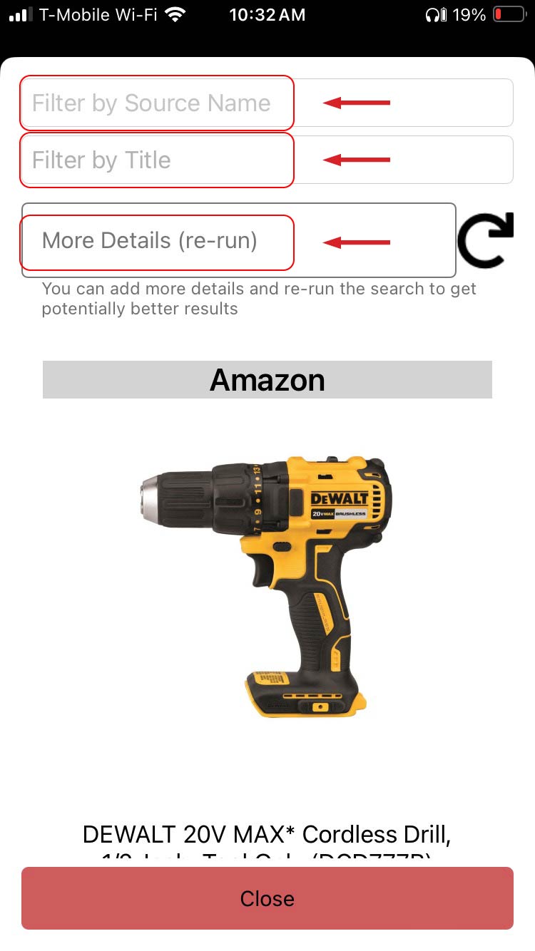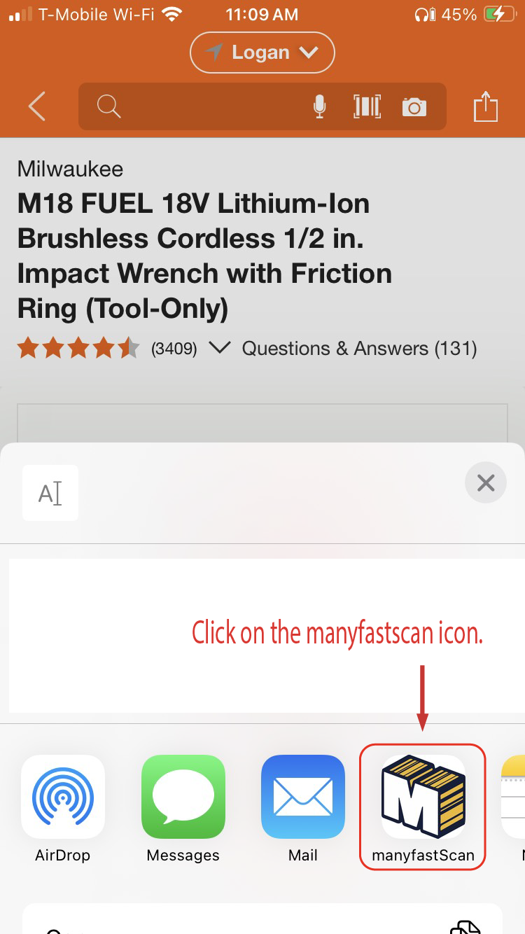 - Share URL - Retailer: This option will allow you to open up a retailers app on your mobile device and search for the item, then share it with manyfastscan.