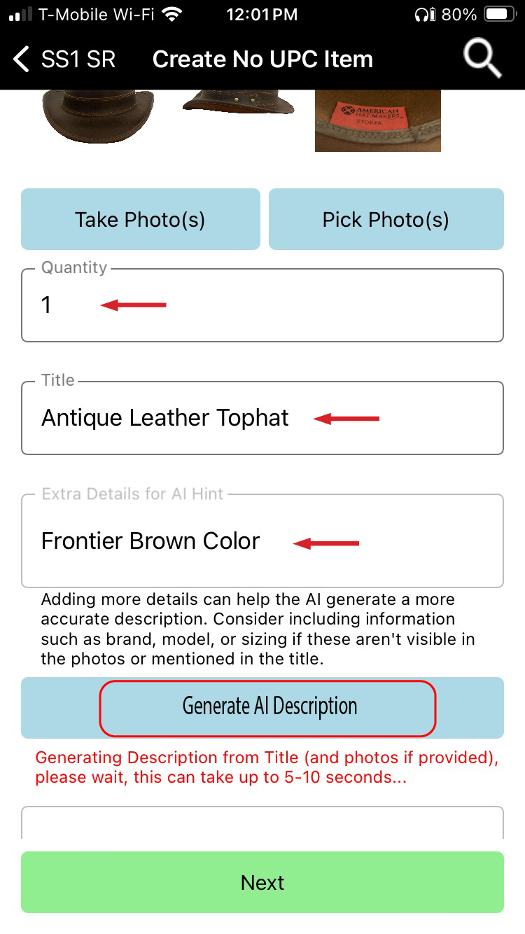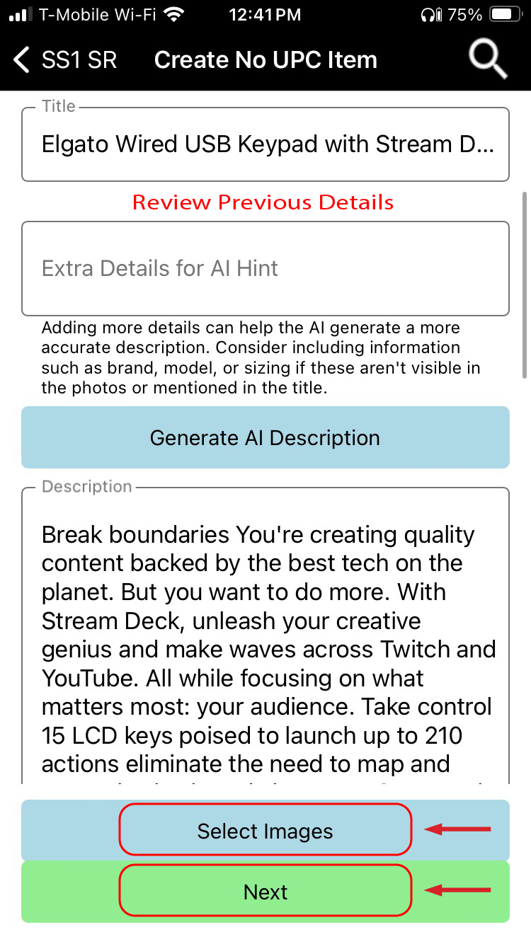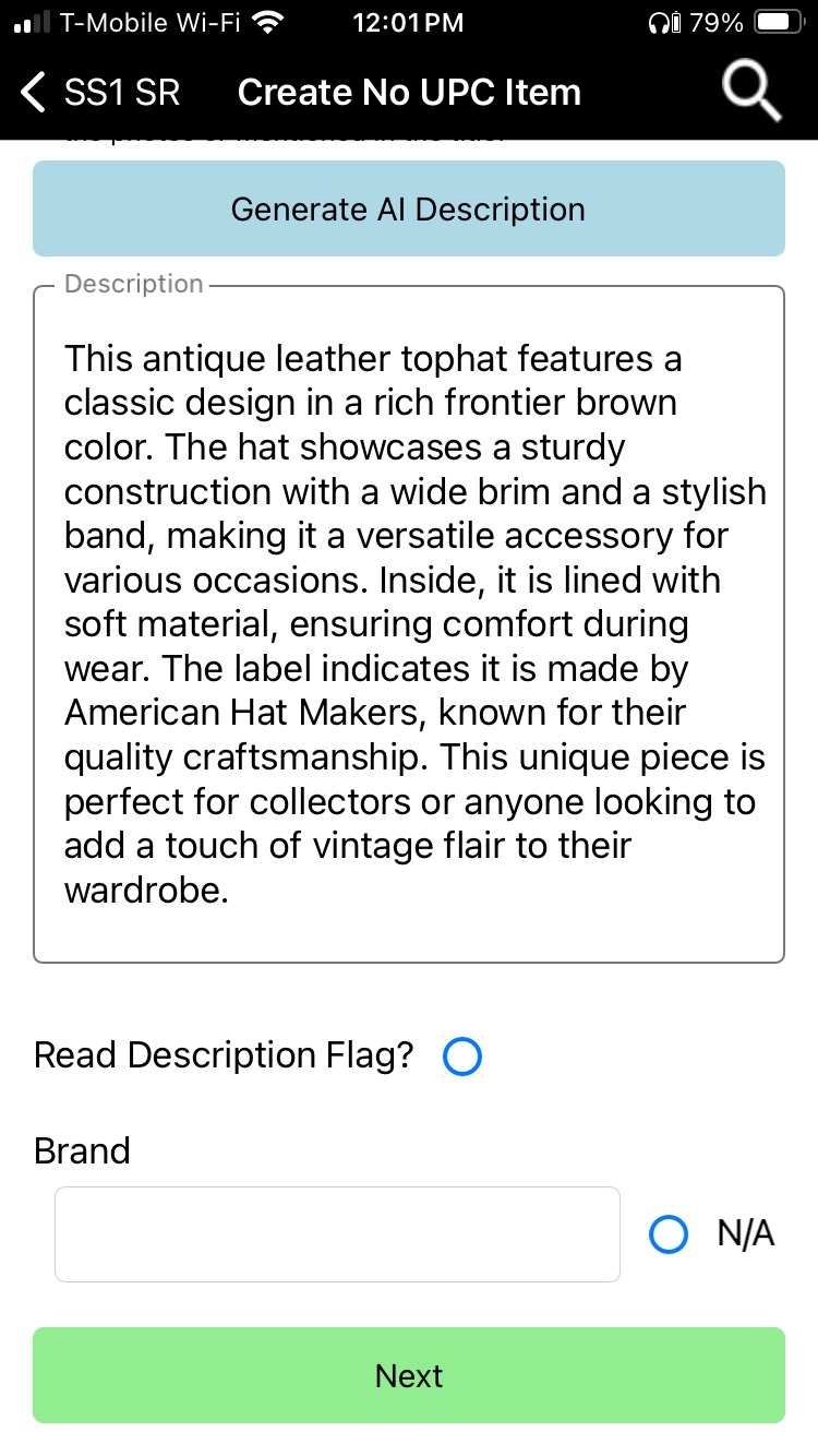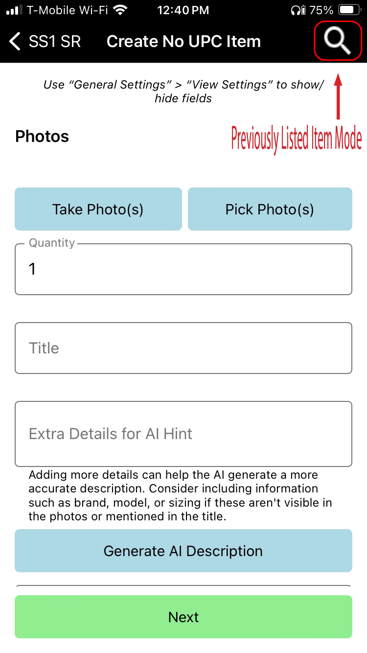 No UPC (Manual) Listing – Manually input item info when no barcode is present and our AI will generate a description.