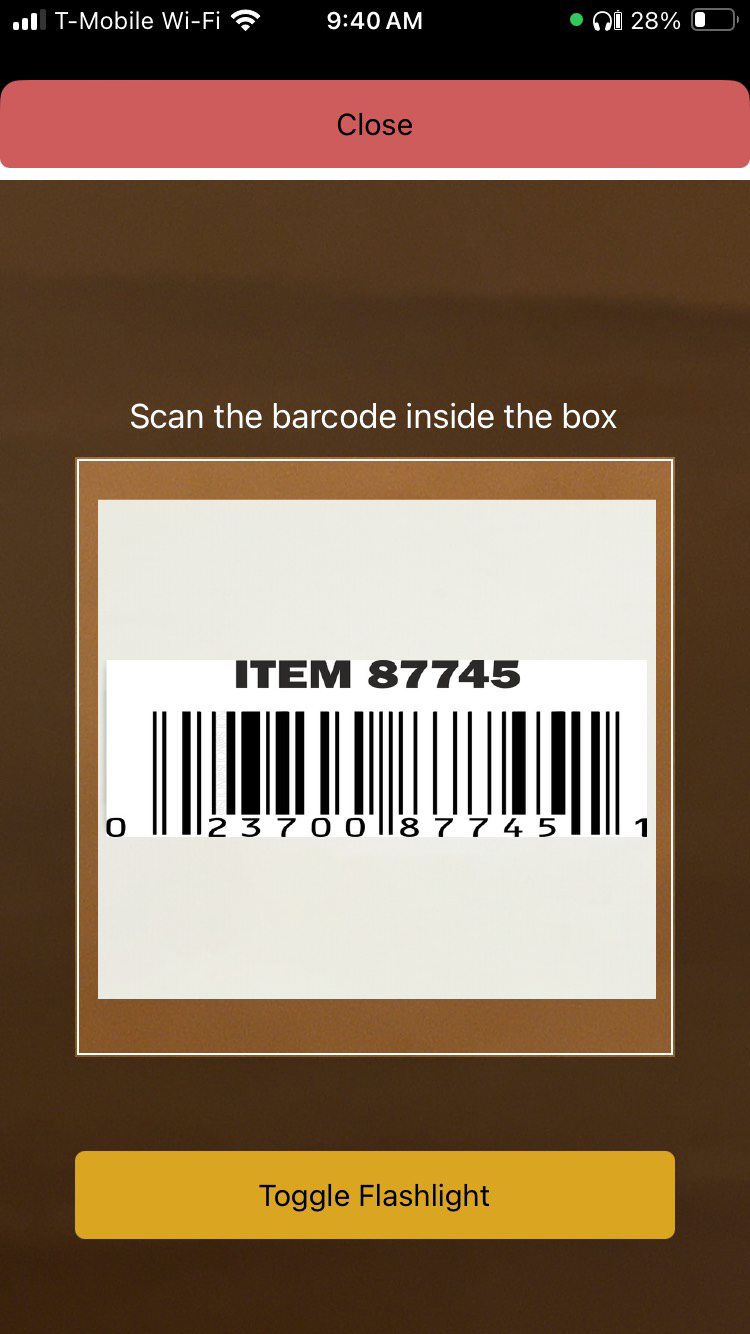 This mode will allow you to scan item numbers from retailers that use their own internal Point of Sale(POS) systems. These retailers often use an internal barcode that is not a UPC.