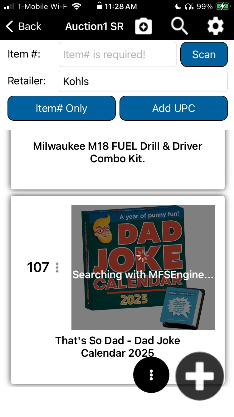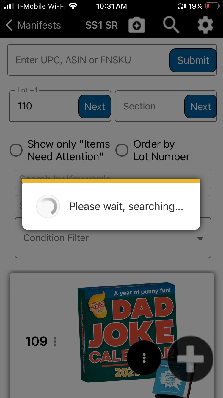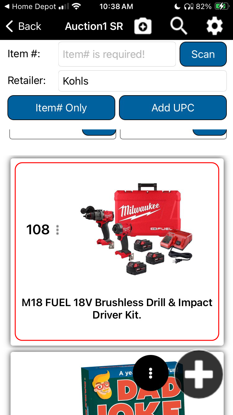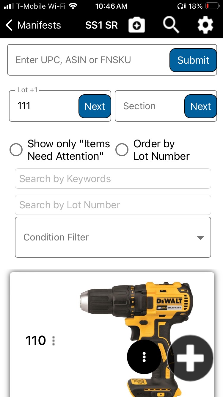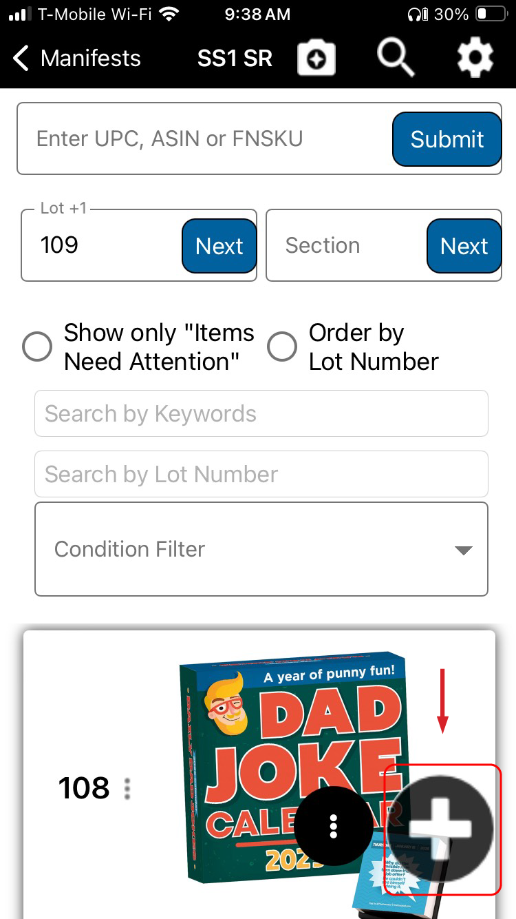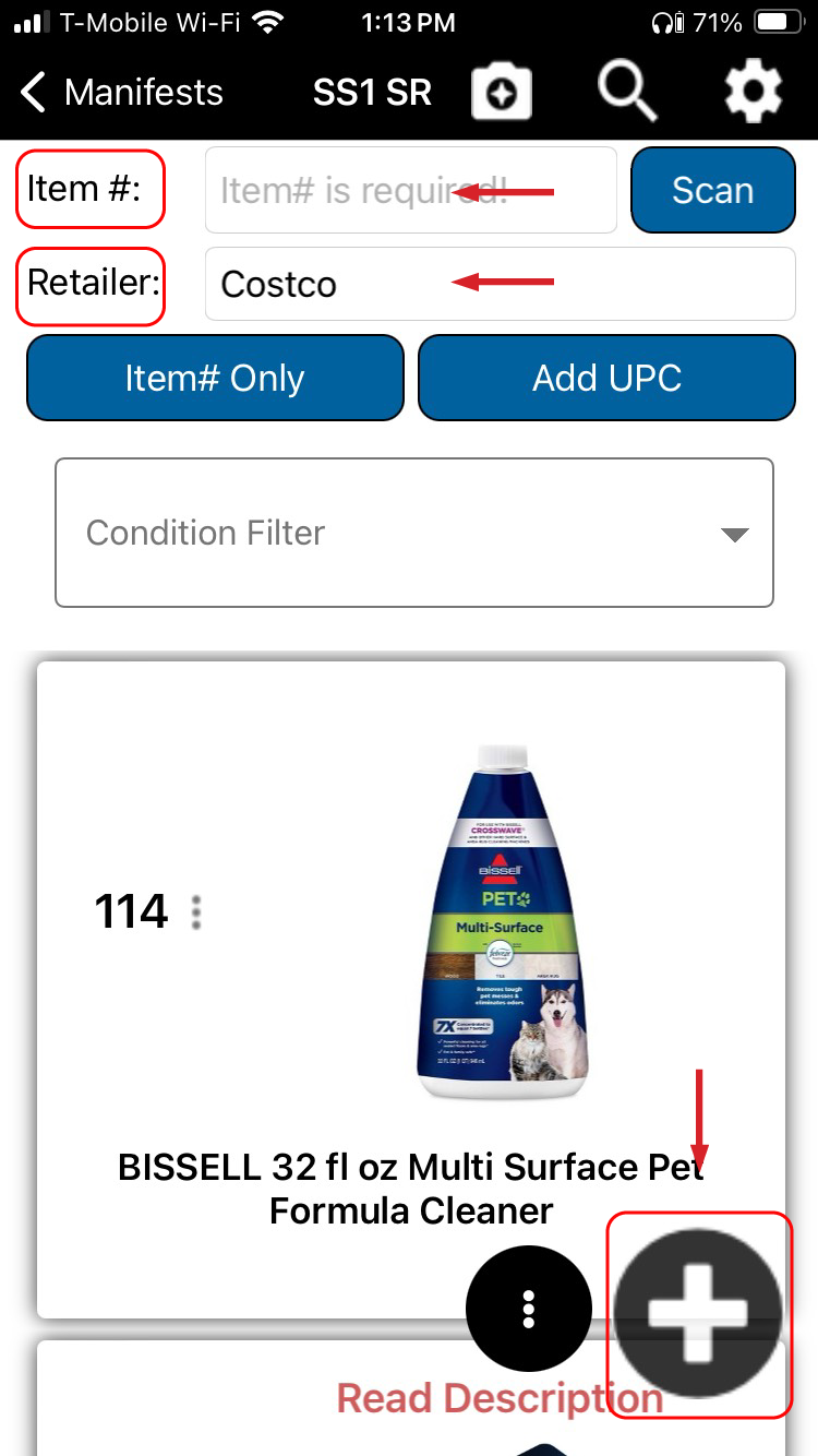 - You may type the item number in, or scan it with the + Sign at the bottom of the screen.