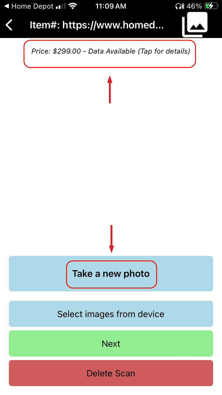 Step 7. Photo Screen: Take photos, or click next to move to the "Add Details" screen.