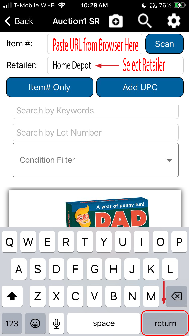 Note: This mode will allow you to search your library of previously listed items and pull the title, and description. It is a great shortcut if an item came in a box last week, but this week is not in a box.