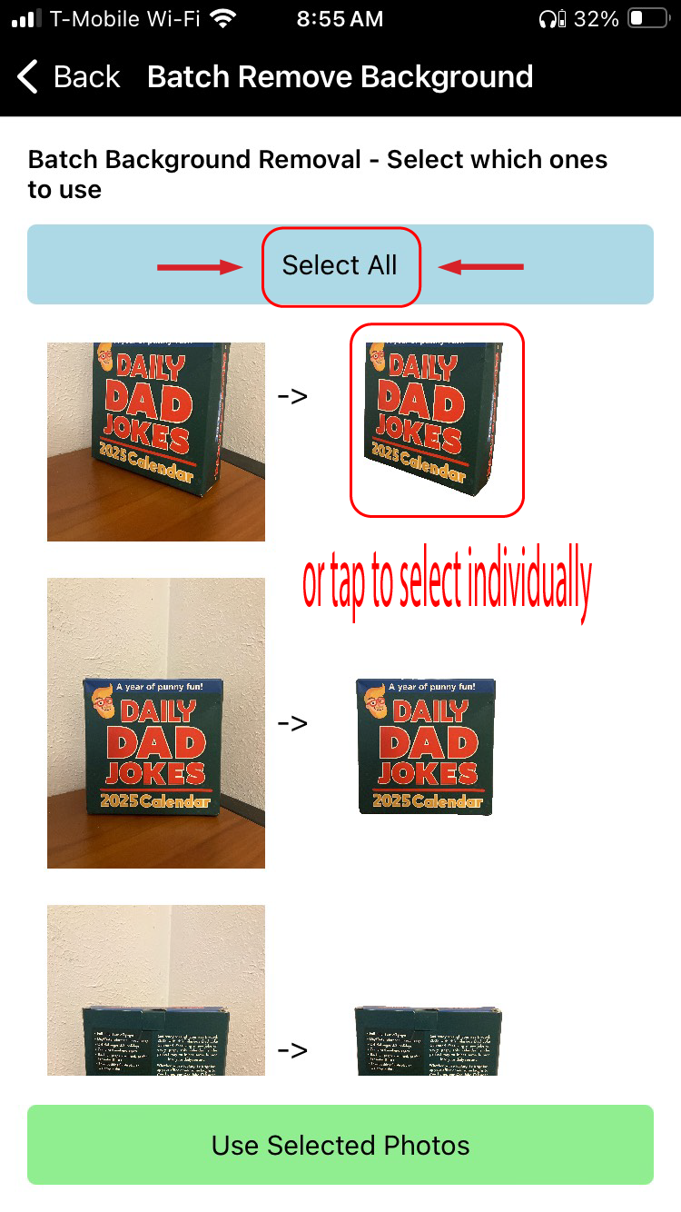Step 3. Once photos have been taken, you can click on each photo and remove background if desired.