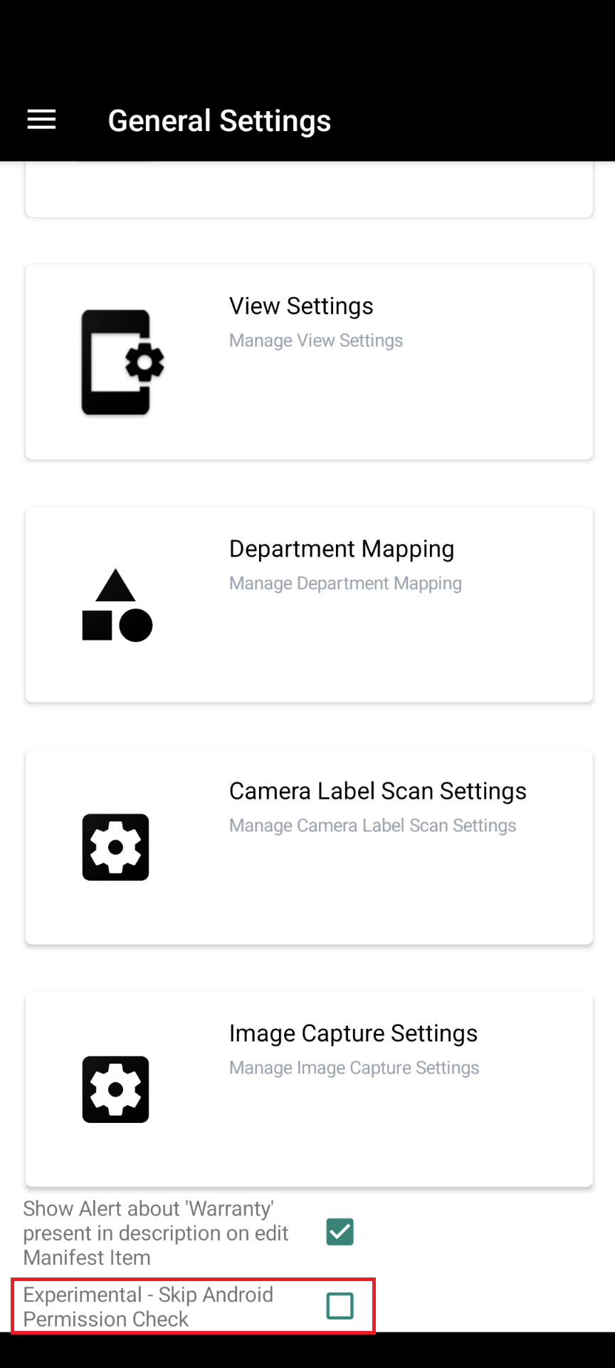 The first approach you should take is going to General Settings and scroll all the way to the bottom. You will see a checkbox called 'Experimental - Skip Android Permission Check'. Check this box and try listing an item. If the issue persists, continue to Step 2 below.