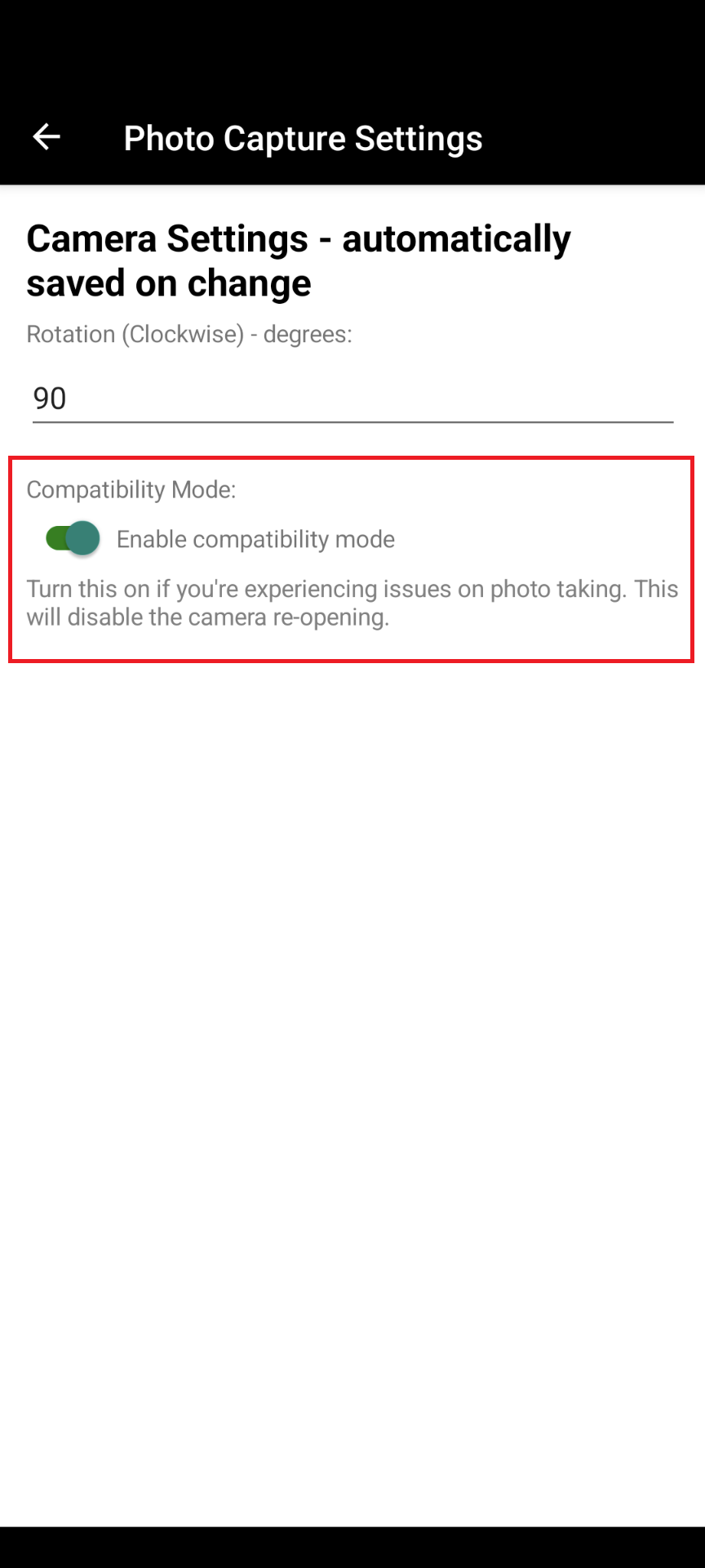 - If the above solution does not work in solving the Android crash issue, go to General Settings > Image Capture Settings and enable 'Compatibility Mode'