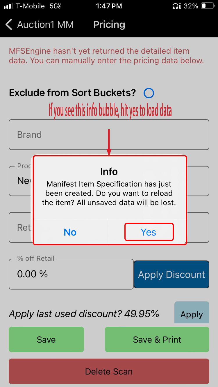 - Force Fresh Data: Toggle to Yes(yellow): Force new data from source when scanning barcodes.