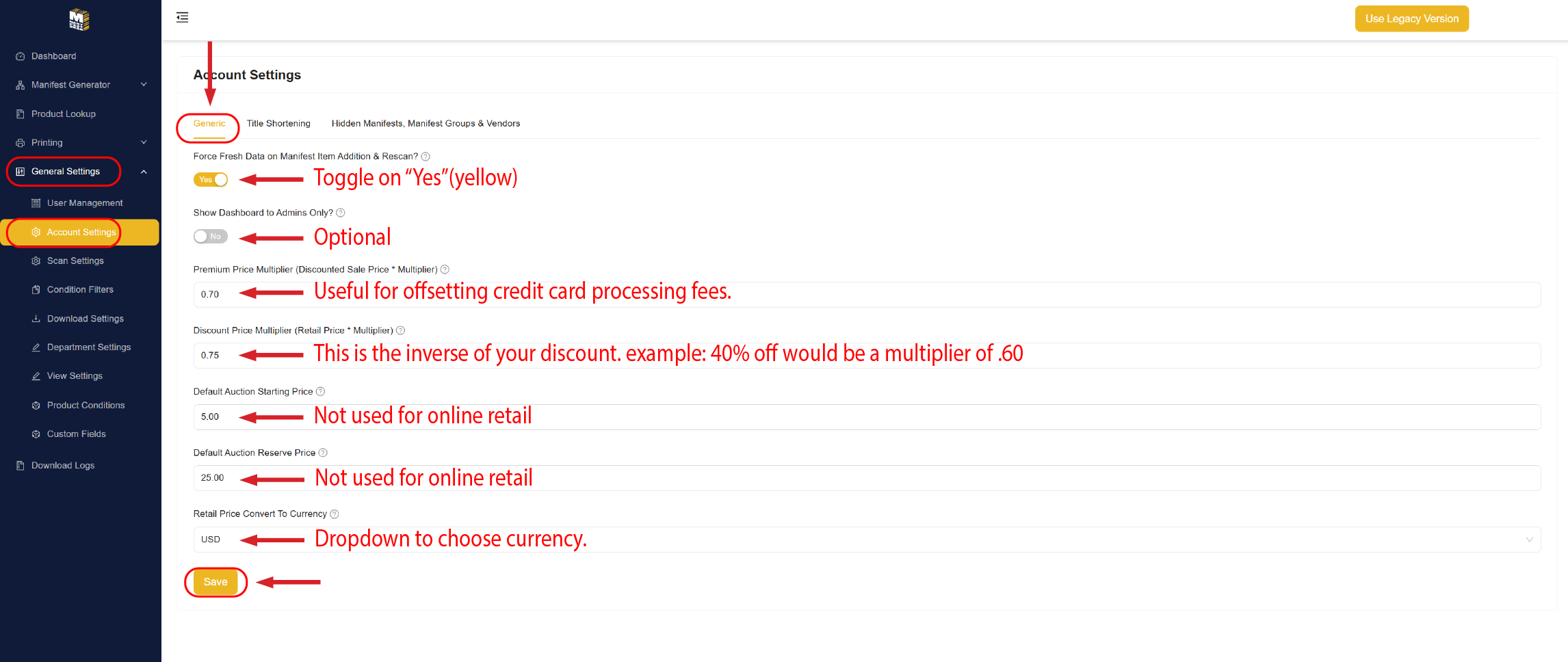 There are some settings which are best suited for listing items for retail sale. We will walk through this process which includes changes to the following: