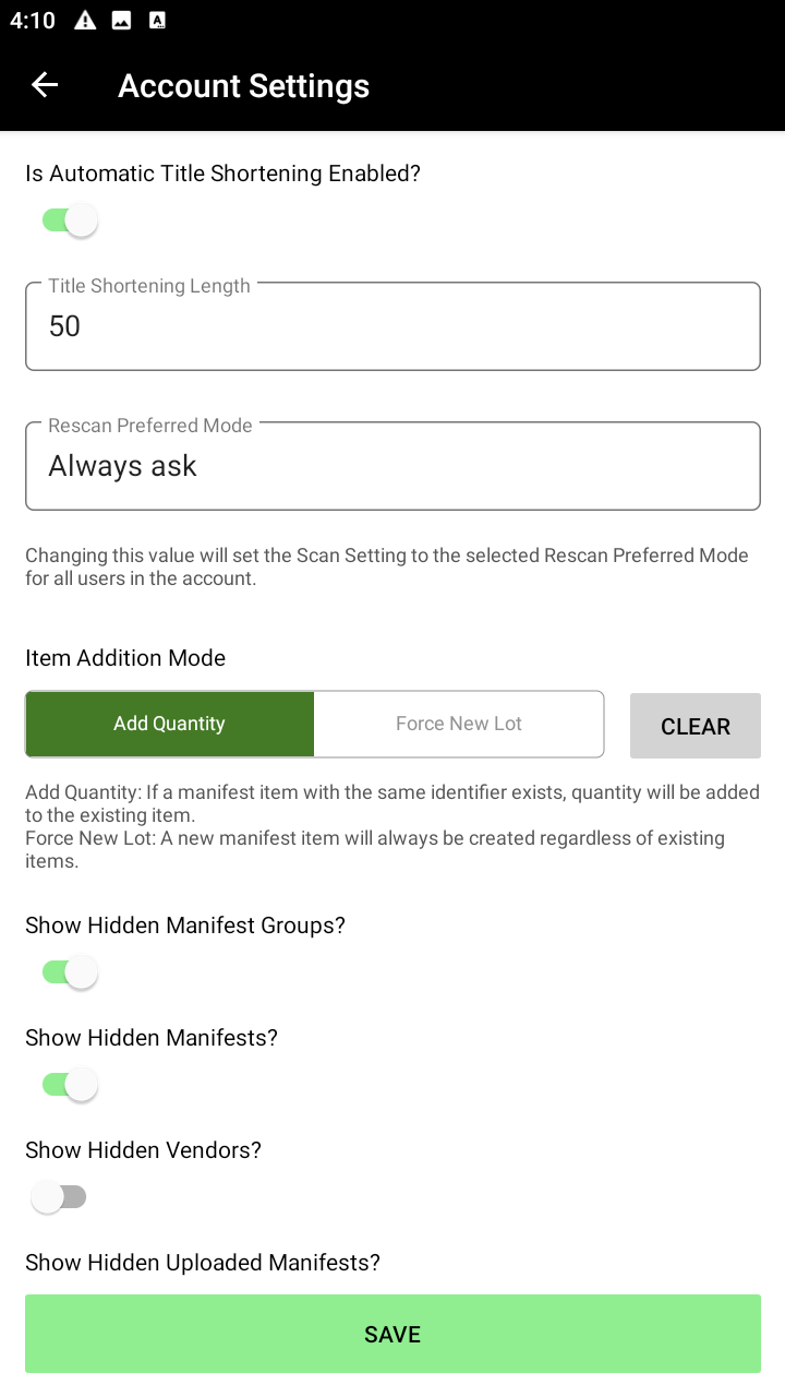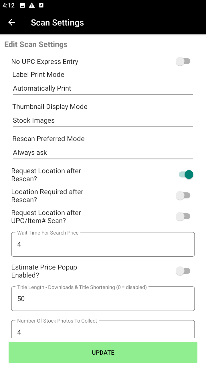 Scan Settings are set individually for each user. Any user who needs to be listing for retail should make these changes to their Scan Settings
