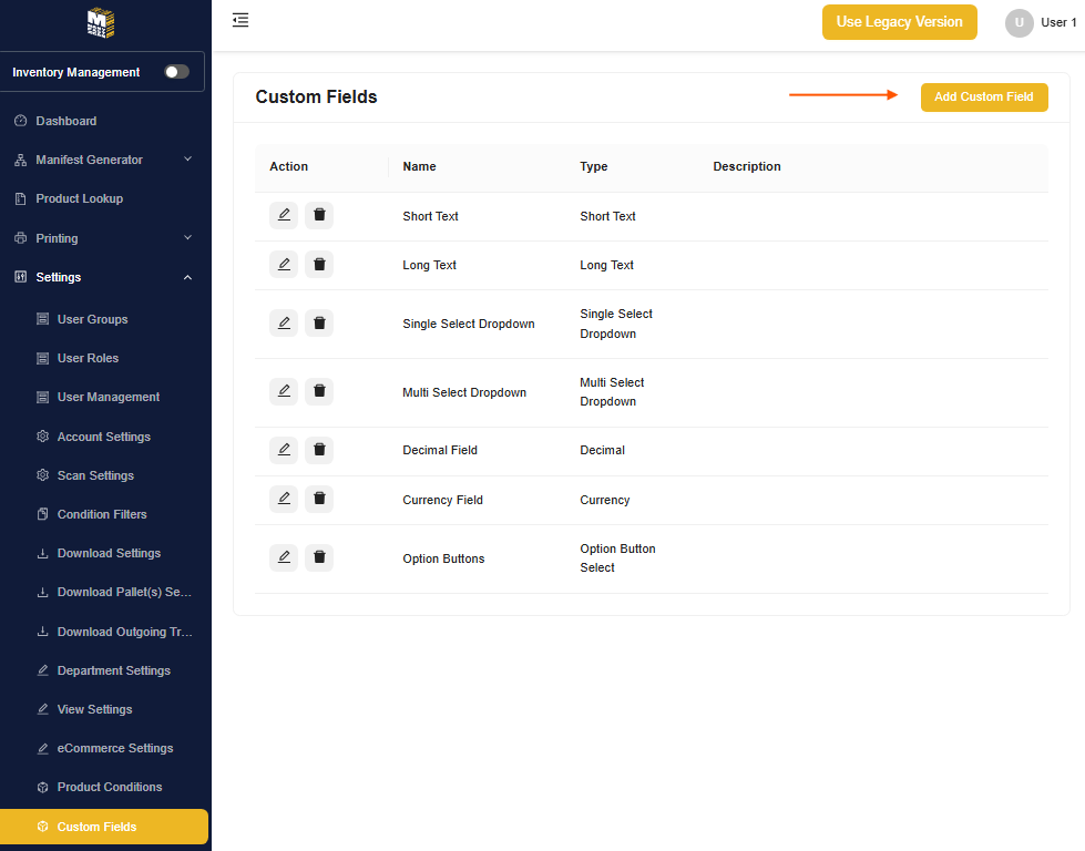Custom Fields allow you to create and manage data entry fields to capture additional information specific to your business needs. These fields can be used to store data not covered by default fields, enabling more tailored item tracking and reporting. Once created, these fields can be included in forms, views, and exports, providing flexibility in how you collect and utilize data.