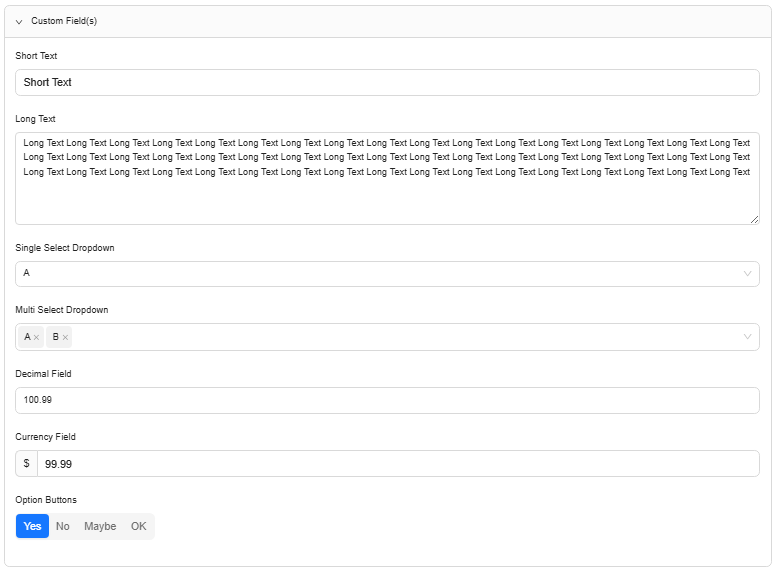 | Long Text | Alpha-numeric data entry for up to ___ characters |