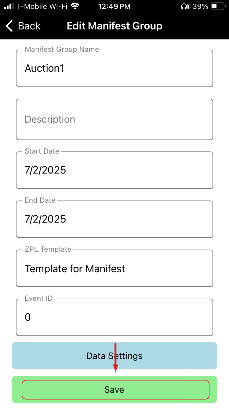 Congratulations, you have edited the "Data Settings" on a Manifest Group.