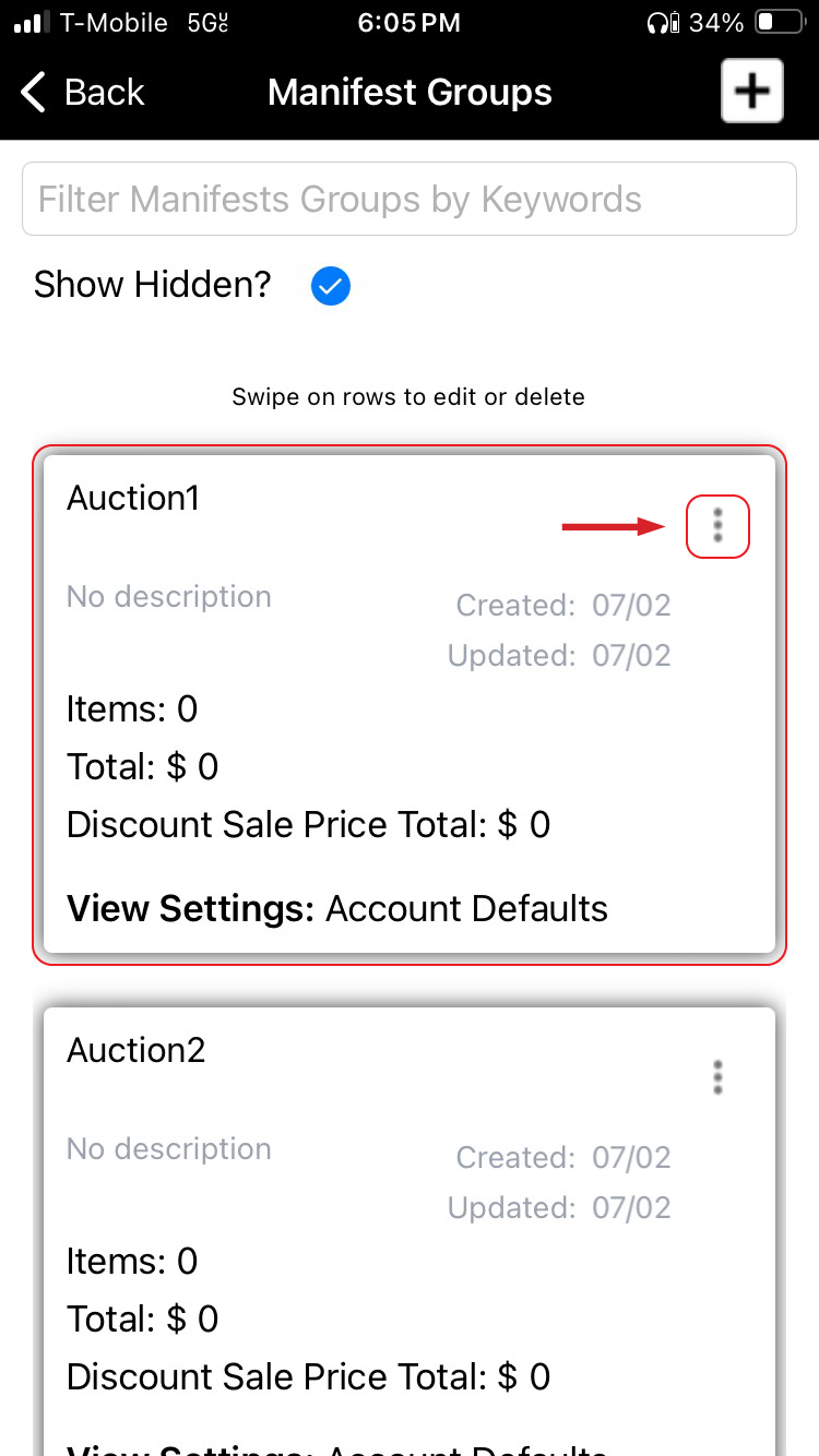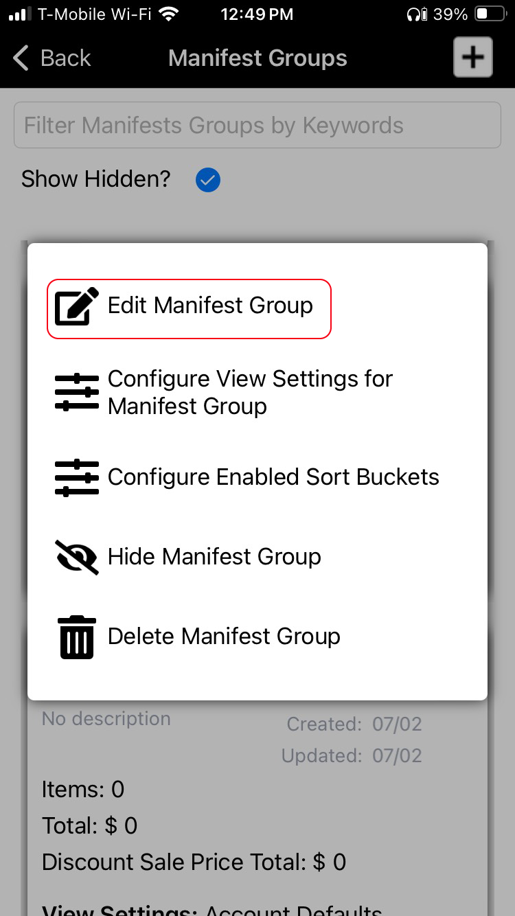 Click on the "3 Dots" in the upper right hand corner of the selected Manifest Group.