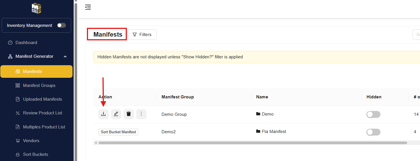 You can also download a single Manifest using the same method. The Manifest Group will combine all Manifests in it.