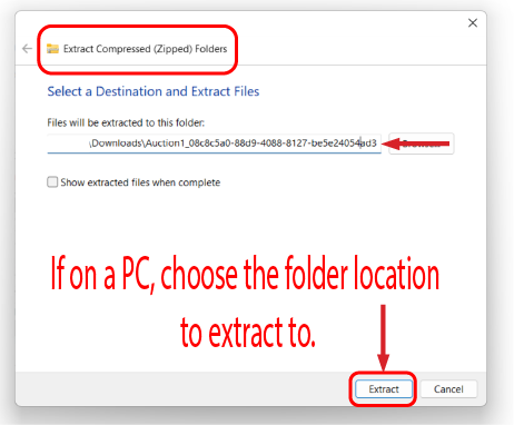 Step 7. If on PC, Choose the location to extract your folders and files to.