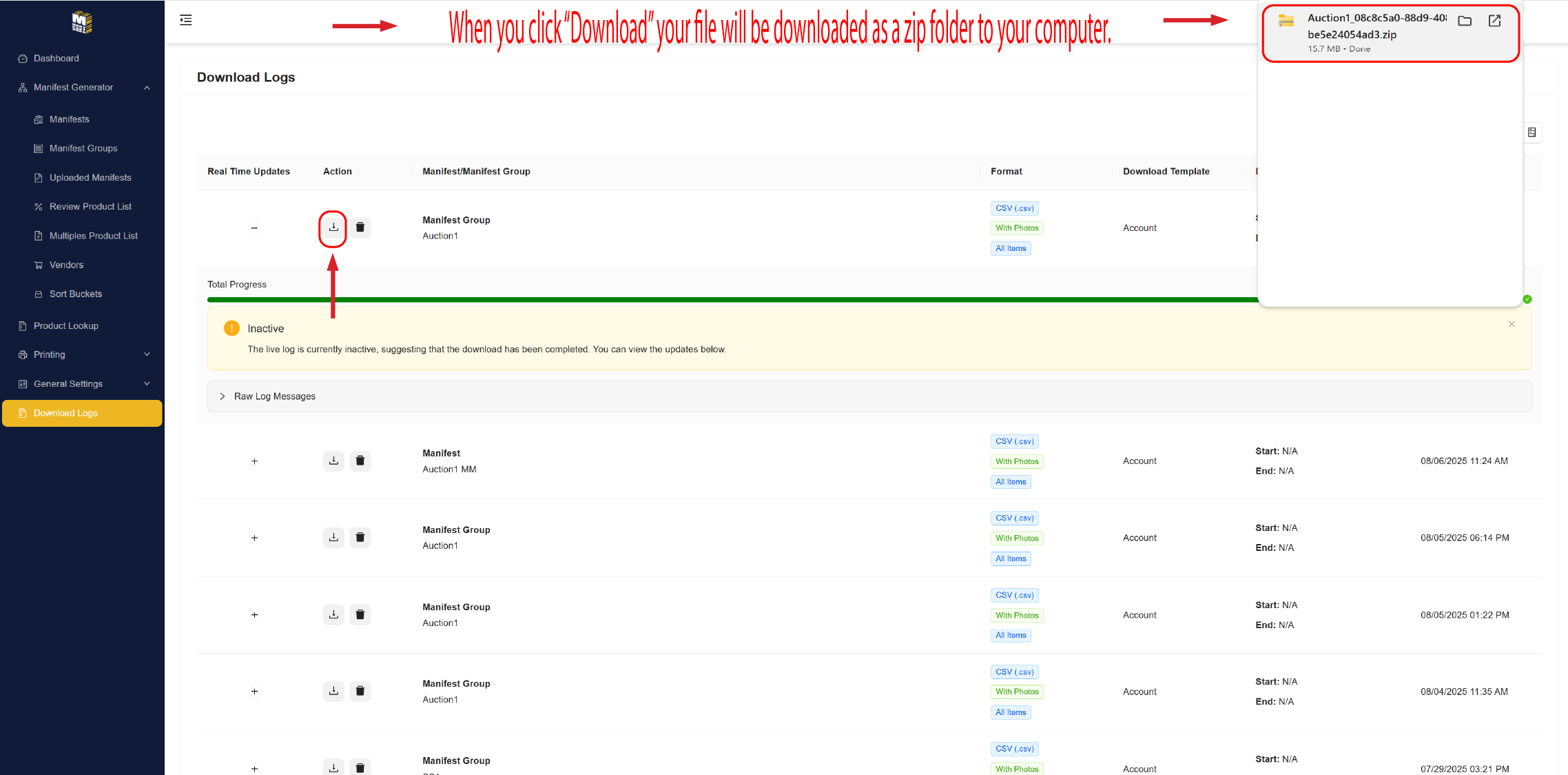 Step 8. Congratulations, you have successfully downloaded your Manifest Group onto your computer, you are now ready to upload it to the desired sales platform.