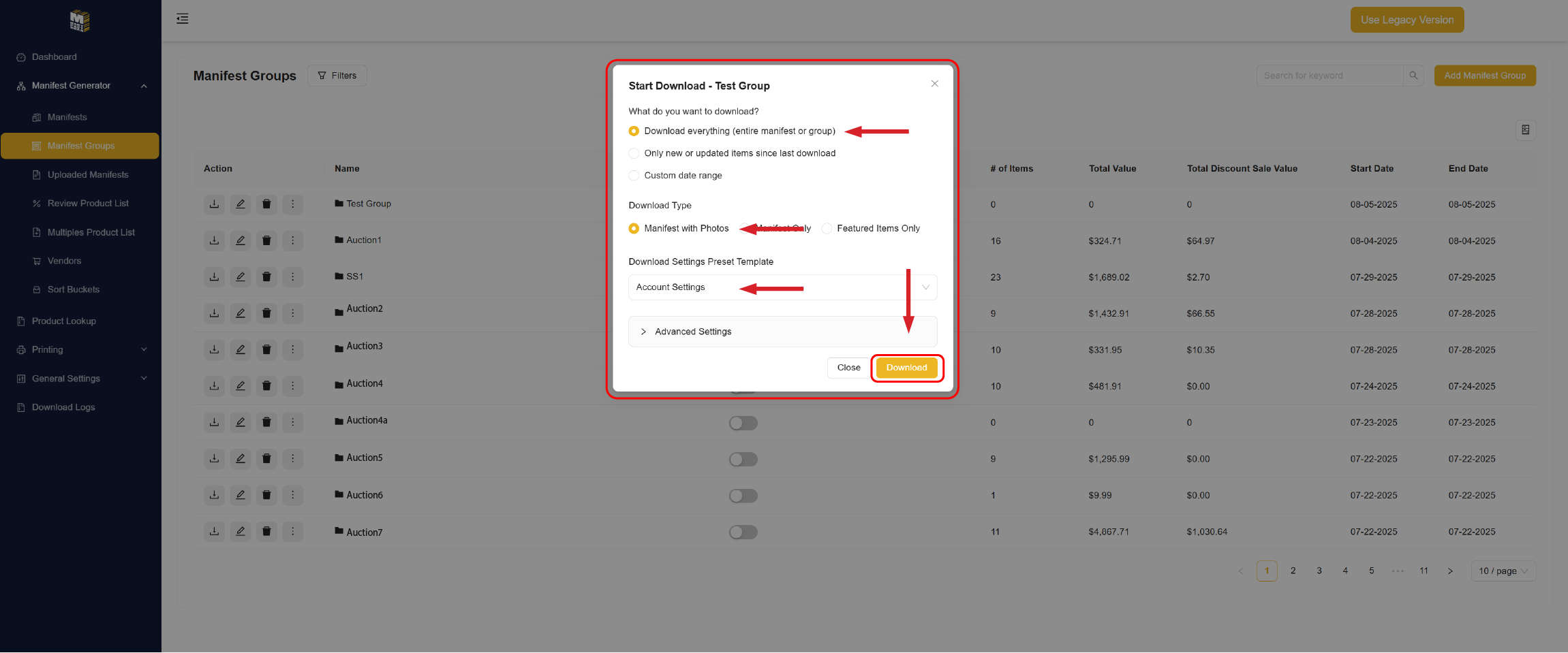 This is a step by step process for downloading a Manifest Group for uploading onto your desired sales platform.
