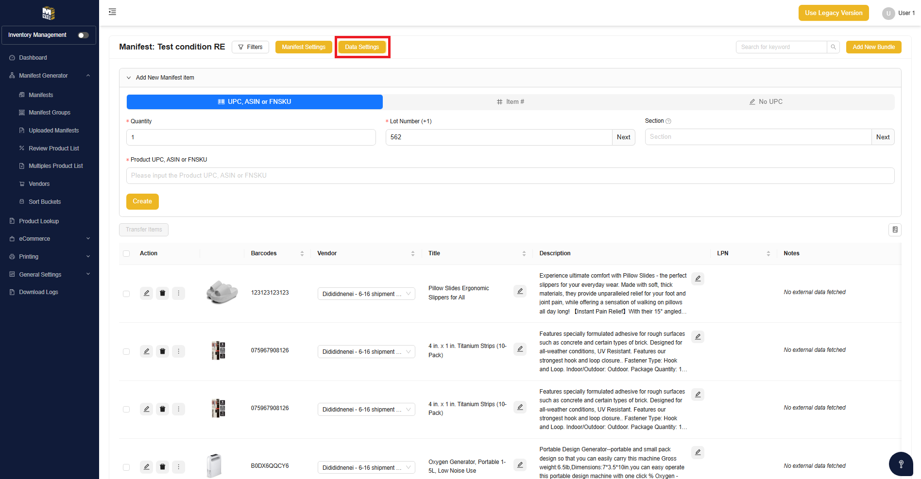 If the Uploaded Manifest is assigned to a Manifest Group, before Manifests are created within that group, the Data Settings will include the Uploaded Manifest Assignment. If the Manifests are already created, continue to the next step below.
