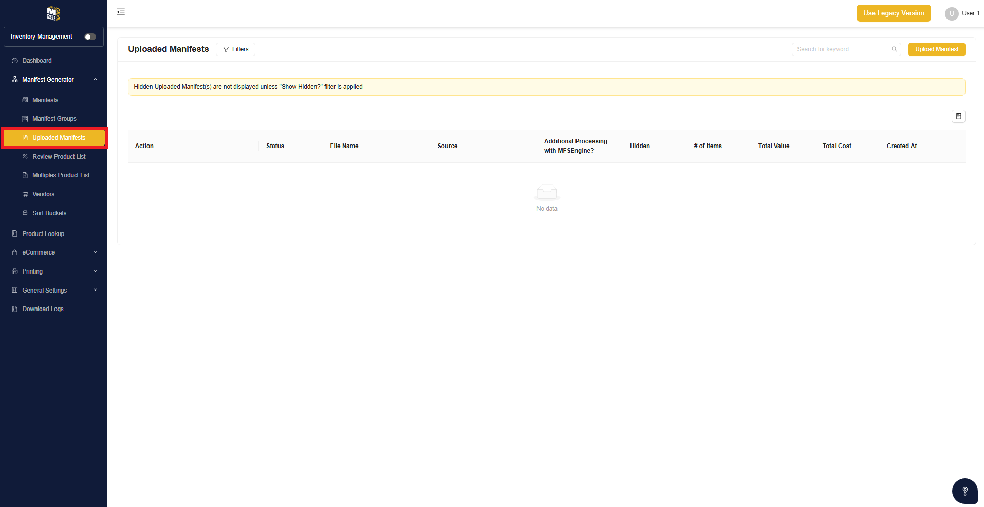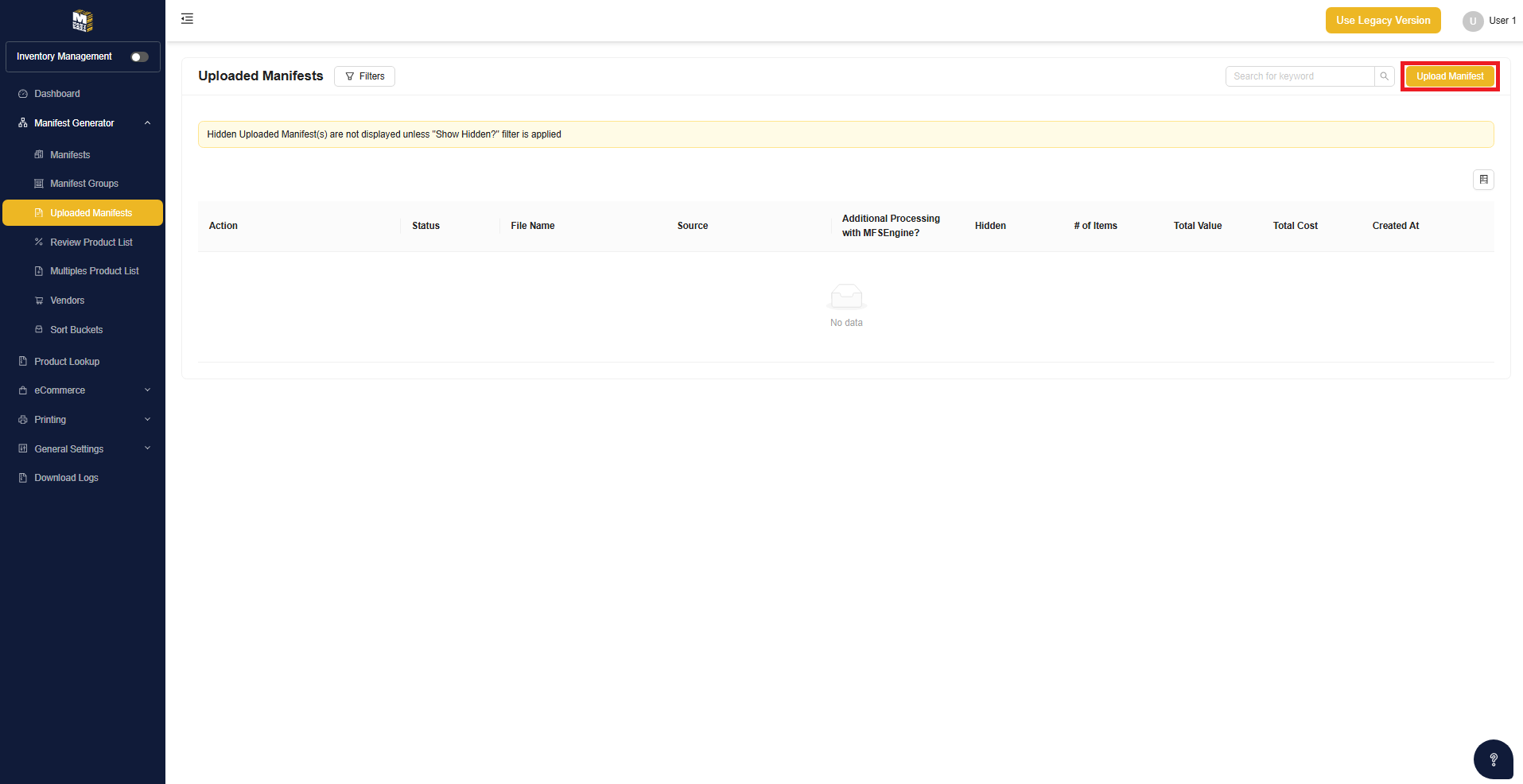 - Navigate to the website and locate the Manifest Generator. Underneath it, select Uploaded Manifests. This action will lead you to a new screen.