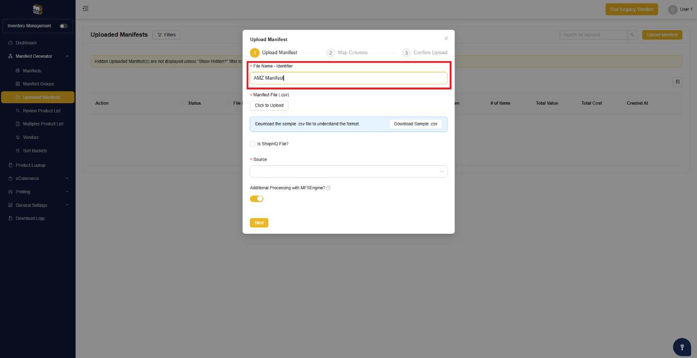 - Name the manifest - it could be the name of your truck, your PO number, or any other identifier.
