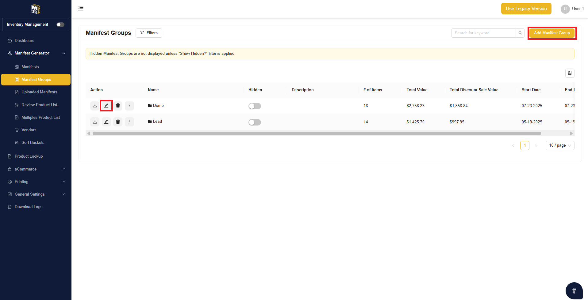 - Once your supplier manifest is uploaded, select Manifest Groups. When you create your next Manifest Group, you can assign this Uploaded Manifest as a data source. If you already have a Manifest Group created, you can edit it.