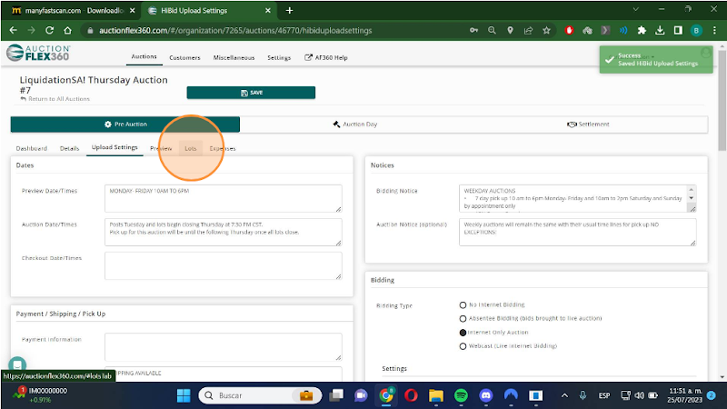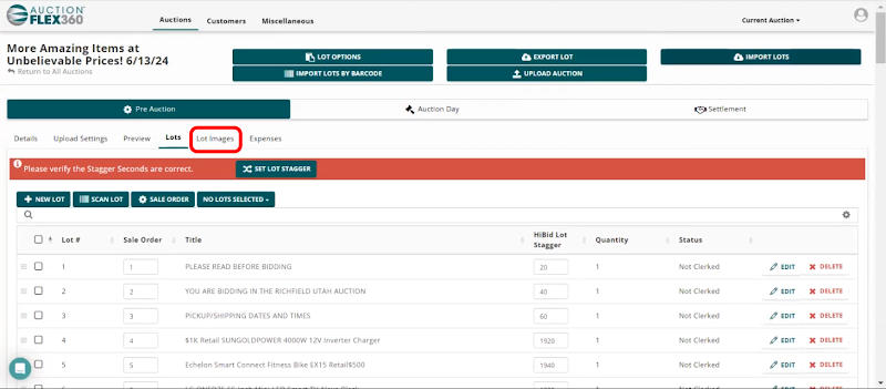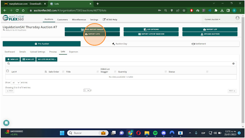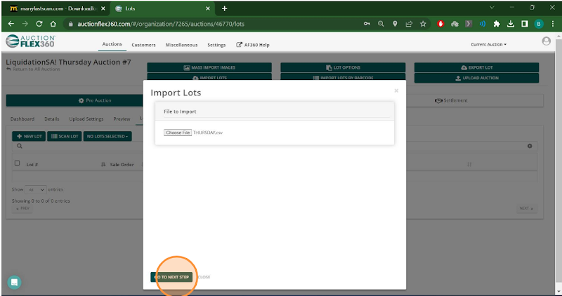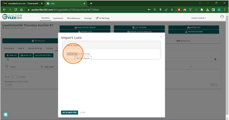Step 1. After creating your auction in Auctionflex360, select "Lots."