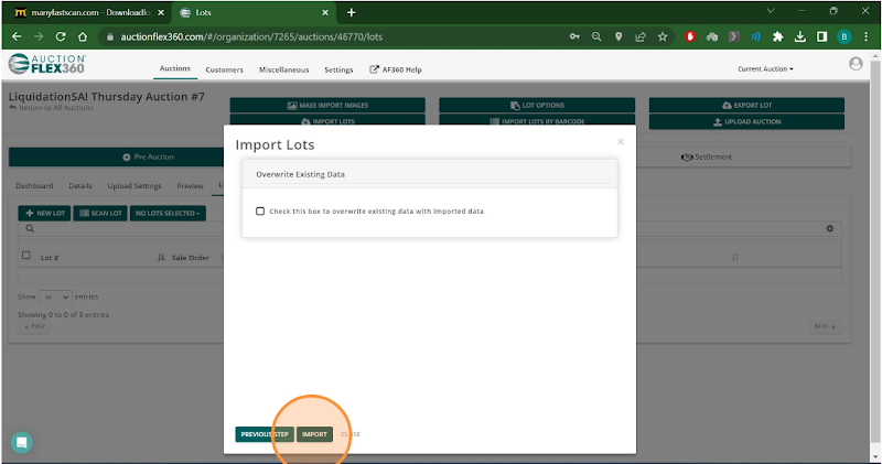 Step 2. Select "Import Lots."