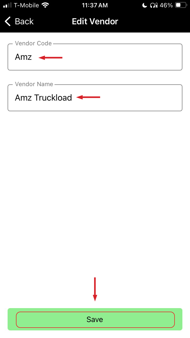 Step 3. Edit Vendor Code and/or Vendor Name.