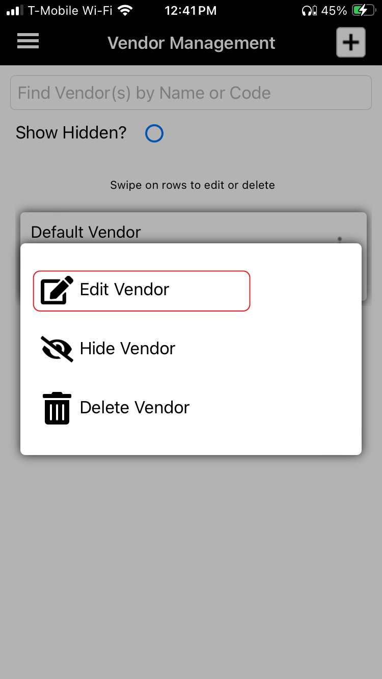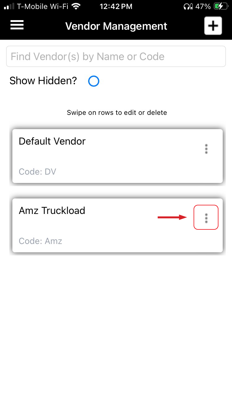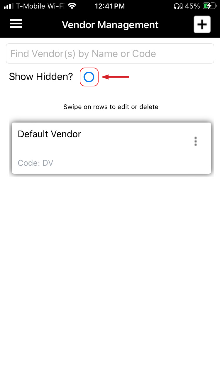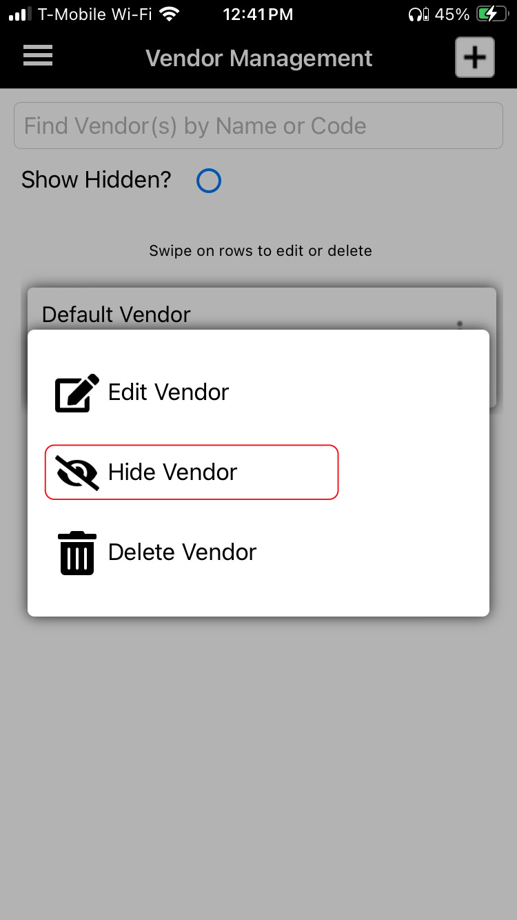 Step 4. Tap "Show Hidden" to view hidden vendors.