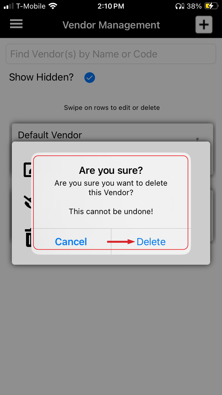 Step 4. Vendor is Now Deleted. Note: This cannot be undone.