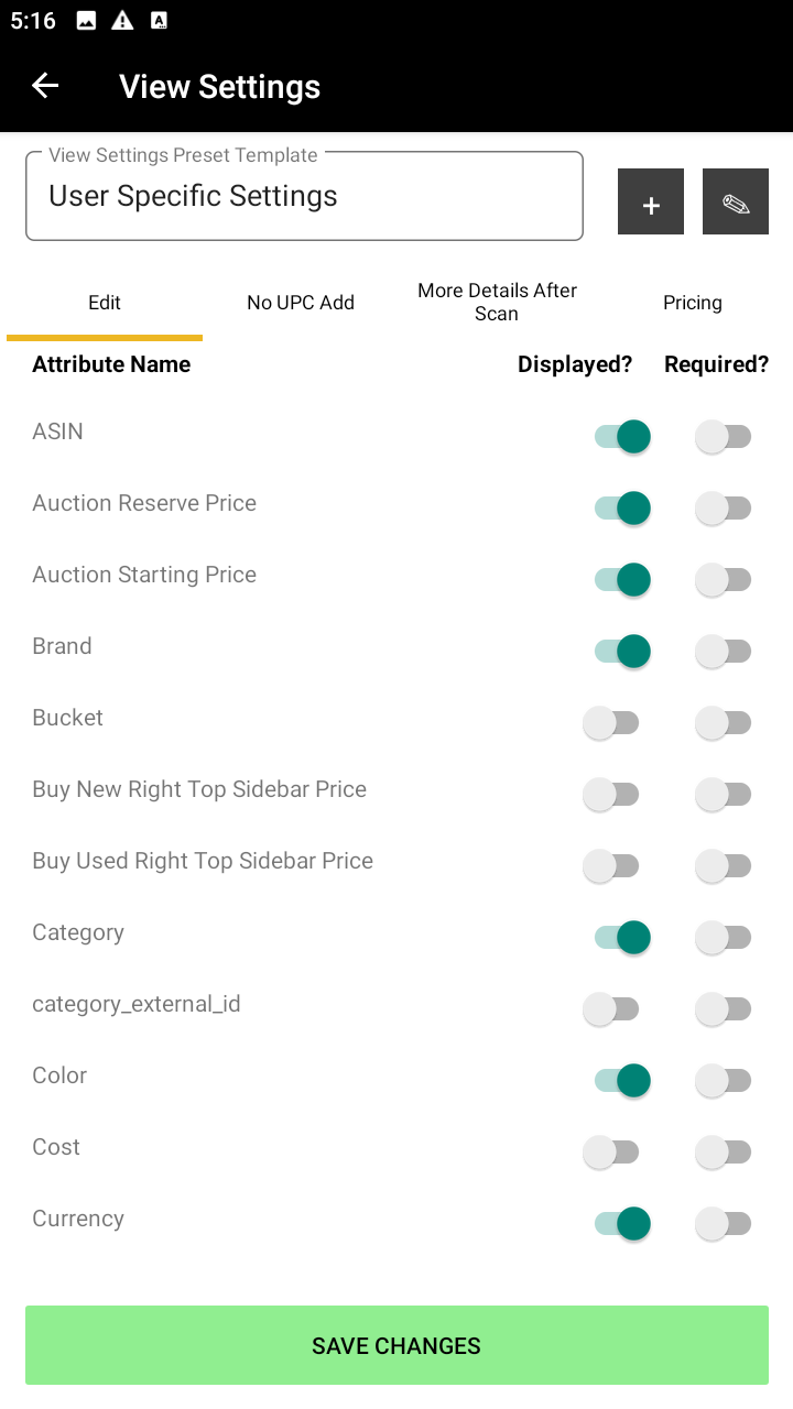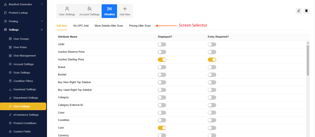 Entry Required? - User must enter value in the field to proceed with completing the product listing