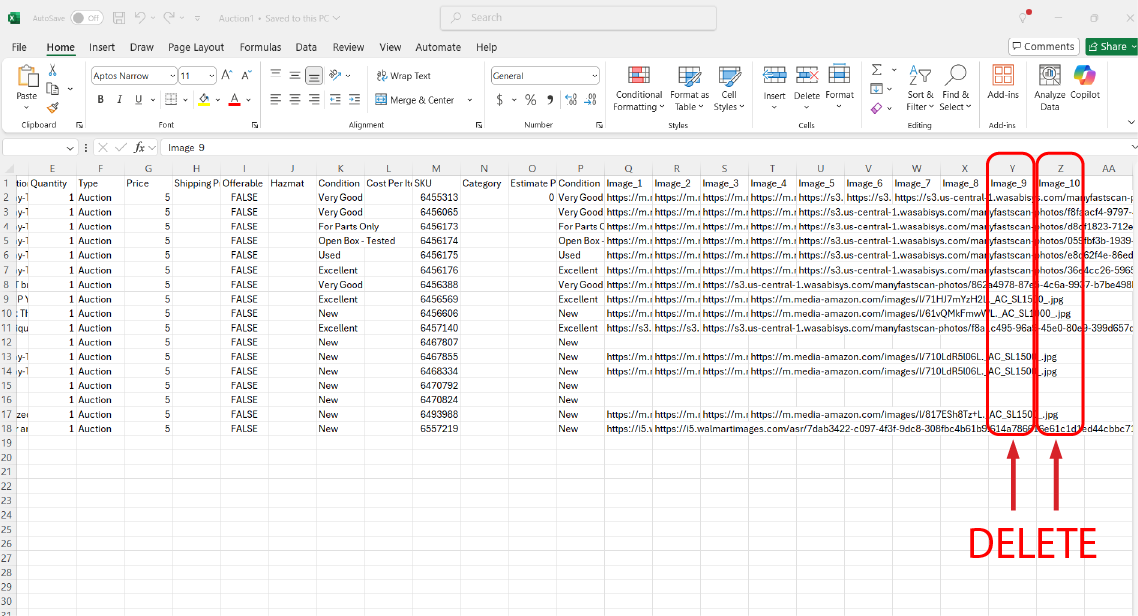 extra columns ‘Image URL 9’ and ‘Image URL 10’ – Delete these columns from your