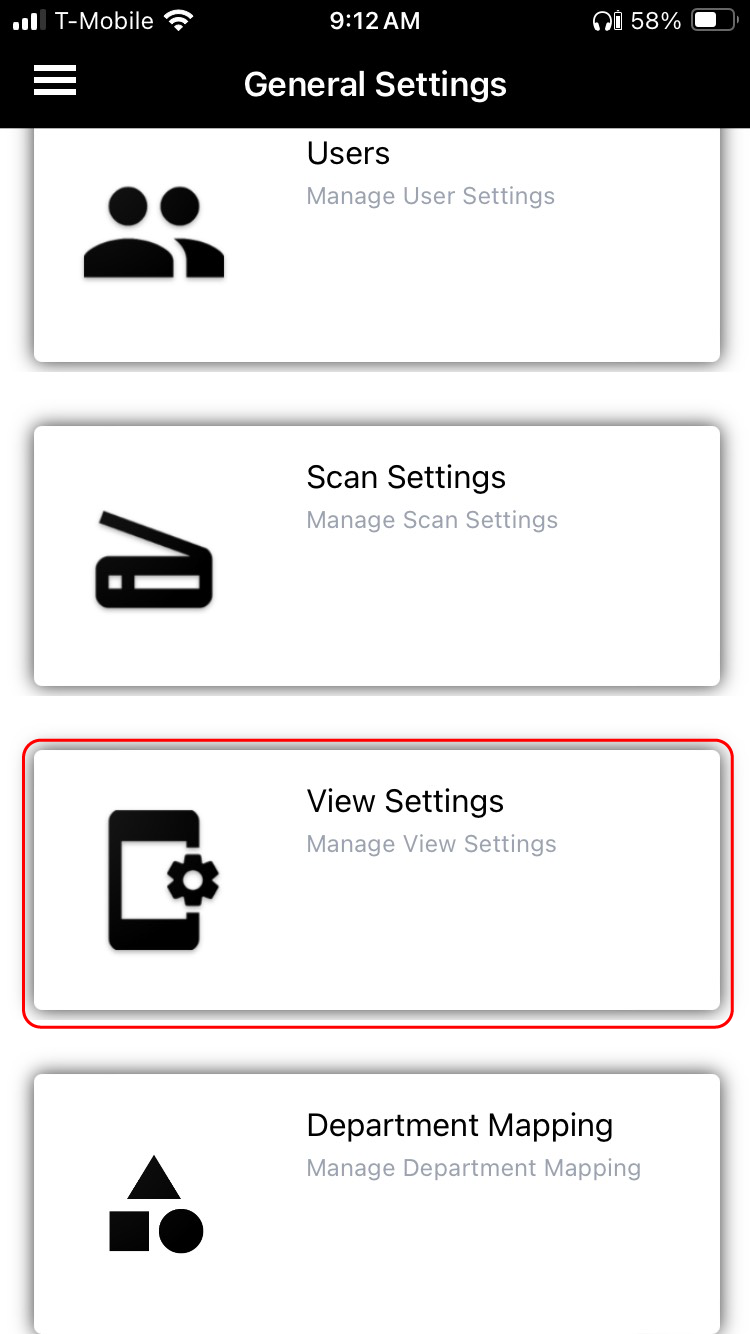 Step 1. To set the User View go to the Main Menu in the app Tap the ☰ Menu > General Settings > View Settings.
