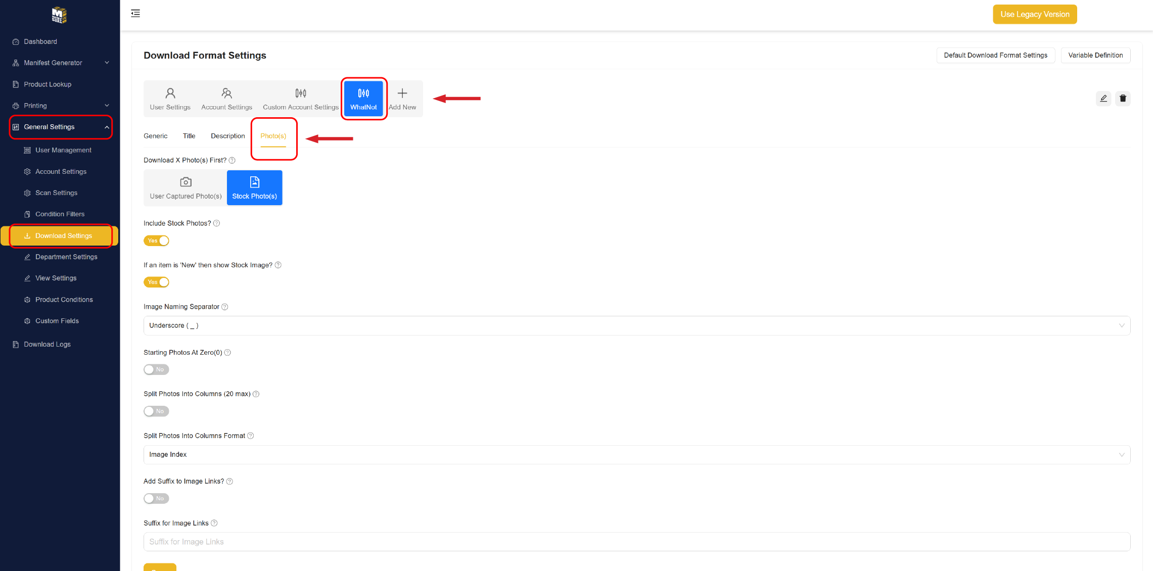 Step 1. Go To beta.manyfastscan.com > General Settings > Download Settings